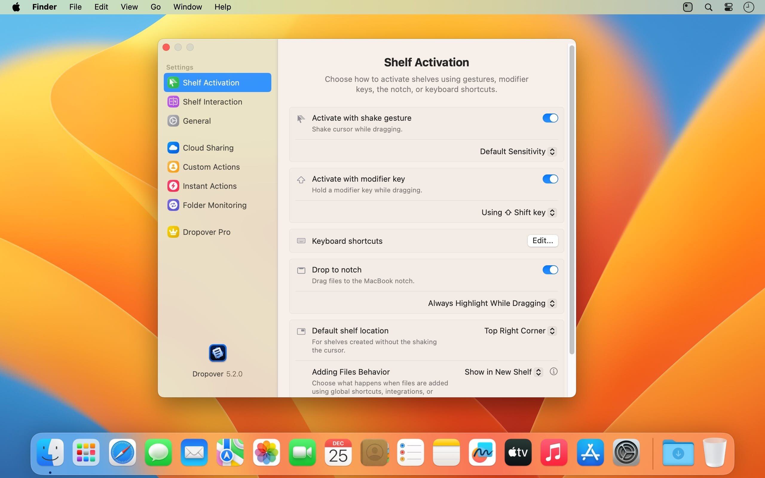 - Shelf keyboard shortcuts now require the Dropover window to be focused to prevent accidental activation while using other apps.