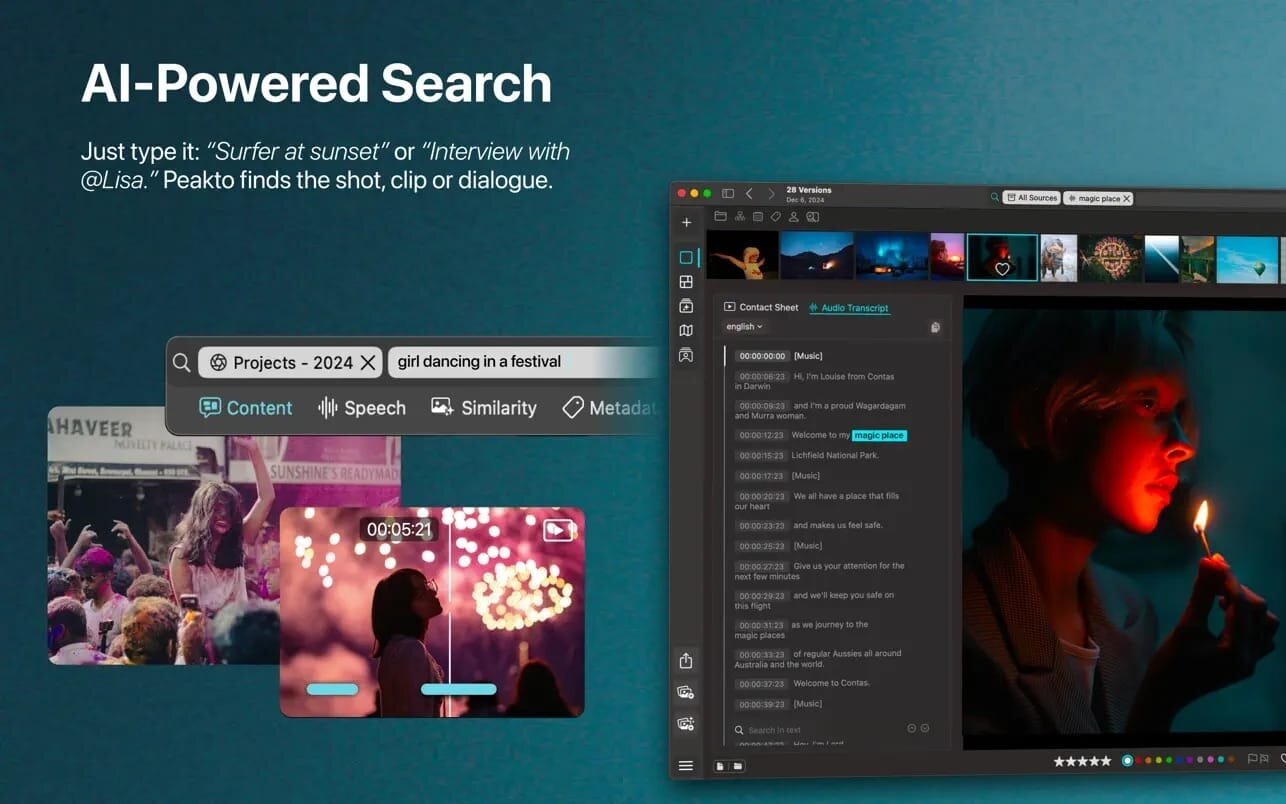 Your photos and videos live across multiple devices, folders, and apps—making it frustrating to find what you need, when you need it. Peakto solves this by unifying your entire library into a single, powerful interface. Enhanced with AI, Peakto centralizes thousands of files and reveals your work through unique, intuitive perspectives.