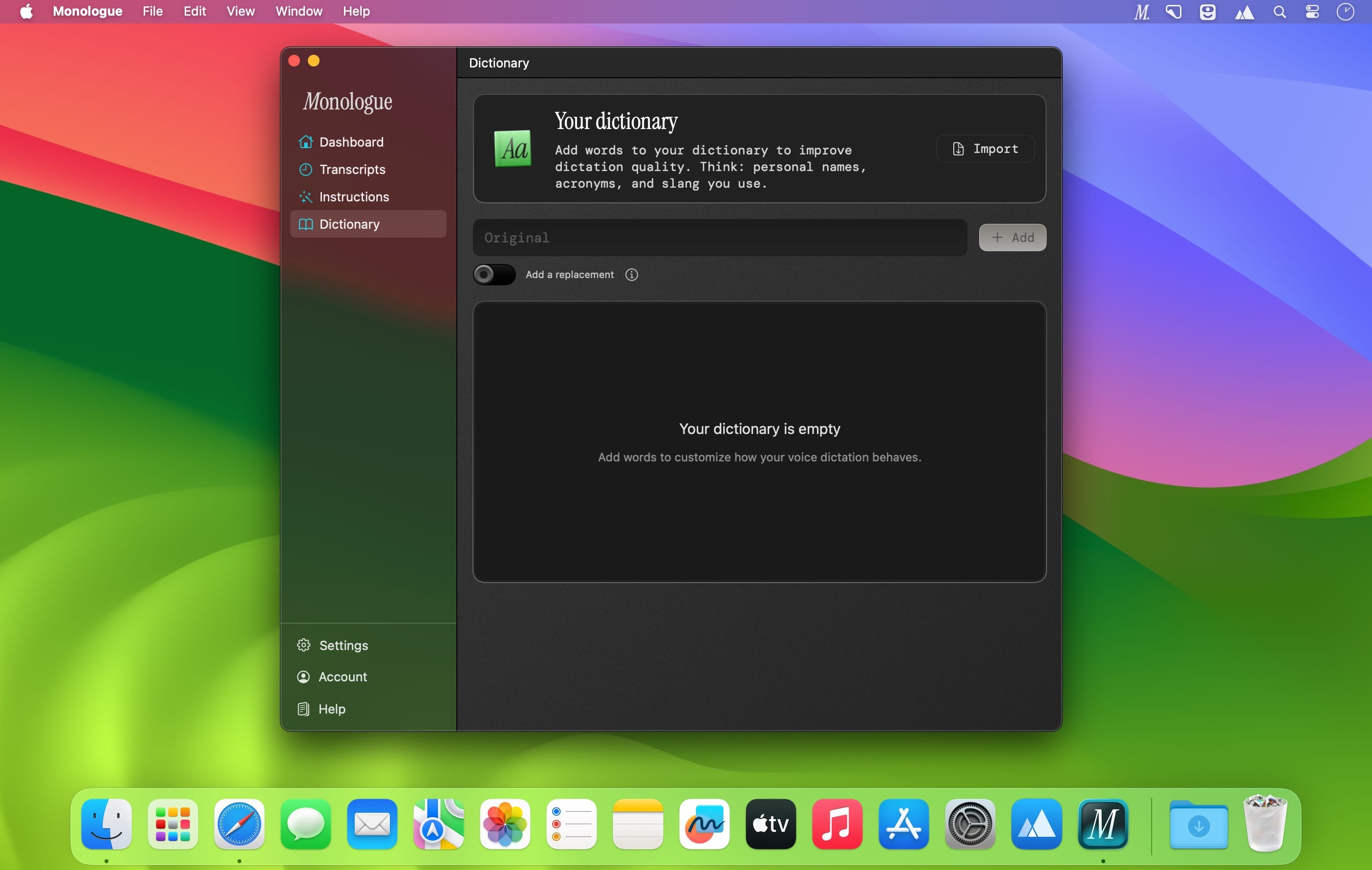 Monologue works as a standalone application, allowing you to dictate text in any program without any unnecessary complications.