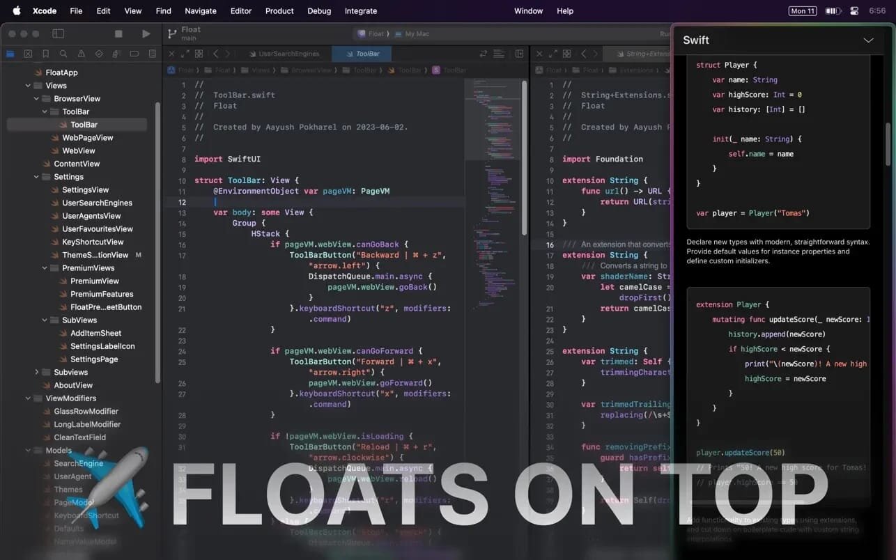 Float is a handy always-on-top browser for macOS—perfect for keeping reference pages, chats, dashboards, docs, or quick searches visible while you work. No more constant app switching: your web is always within reach.